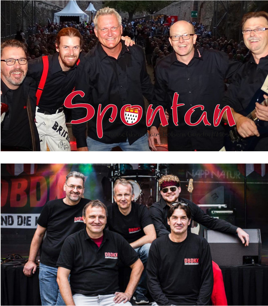 SPONTAN aus Kobern-Gondorf an der Mosel covert mit Herzblut die aktuellen Hits und „Klassiker der bekanntesten Gruppen der kölschen Musikszene (Bläck Fööss, Höhner, Paveier, Räuber, Brings, Kasalla, Cat Ballou, Klingelköpp, Miljö, Querbeat, Lupo)